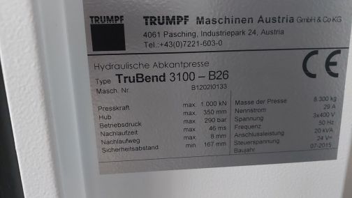 - Abwärtspressgeschwindigkeit 1 - 15 mm/sek