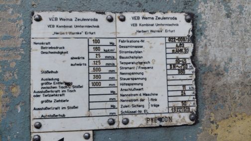 - max. Presskraft 100 t